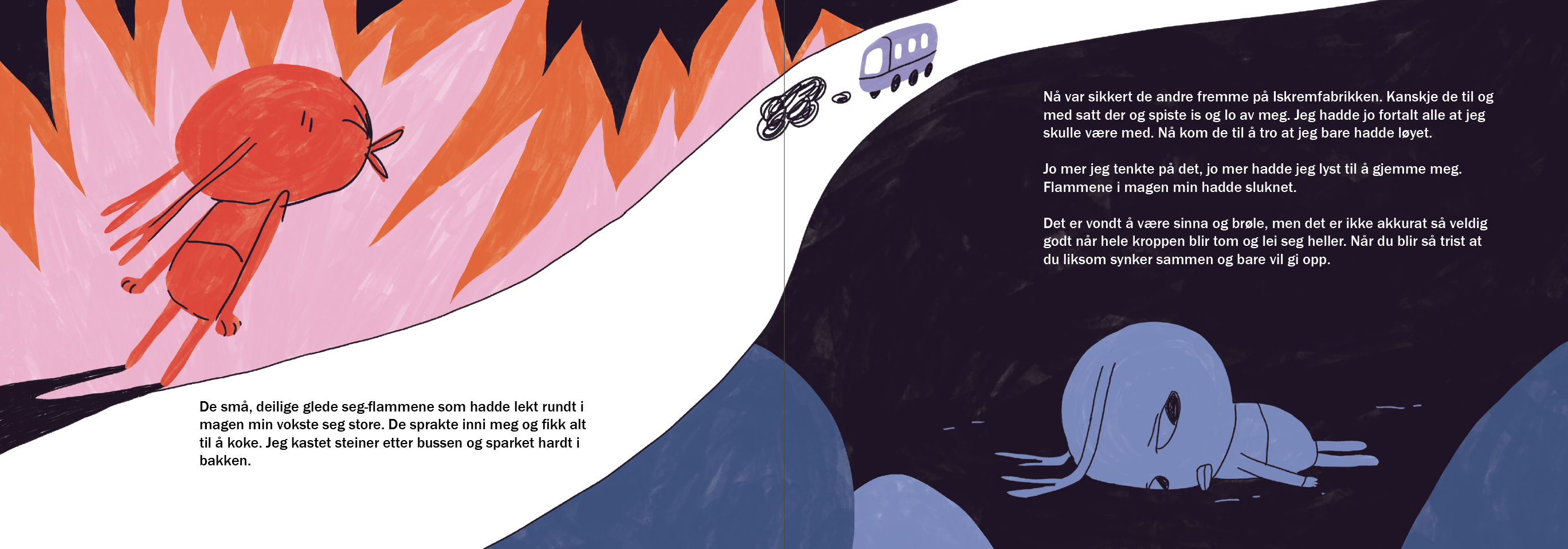 Det viktigste i et barns liv er opplevd trygghet, og gode relasjoner til trygge voksne. Vi ønsker at boken stimulerer til gode samtaler rundt ulike følelser, hvordan vi viser dem og hva som kan hjelpe oss når vi har det vondt. Kanskje også boken hjelper deg som voksen til å bli tryggere i å møte barn som har store følelser.