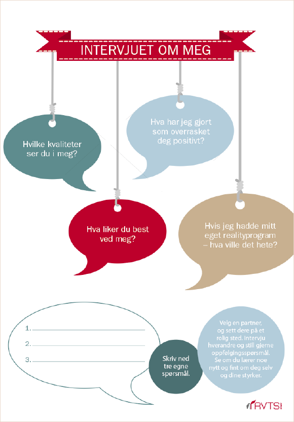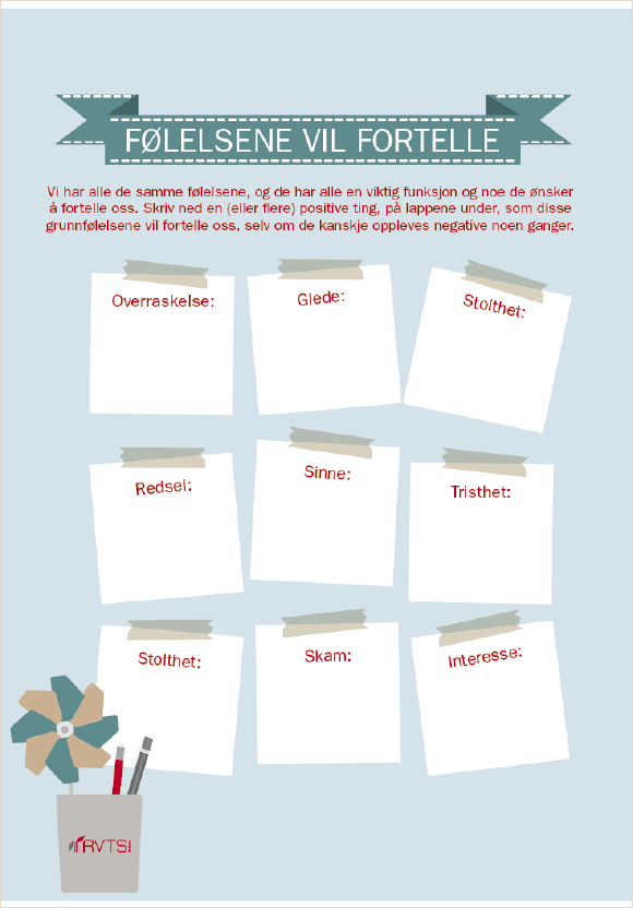 Med disse oppgavene gir vi barna en mulighet til å bli bedre kjent med seg selv, sine styrker og sitt potensiale. De vil bli mer bevisste på hva de verdsetter, og hvilke drømmer de har. Dette kan bidra til å styrke tilhørigheten til menneskene rundt dem, og at de blir bevisste på hvordan de kan vise omsorg og medmenneskelighet i hverdagen. Oppgavene kan brukes både hjemme, på fritidsarenaer og i klasserommet.